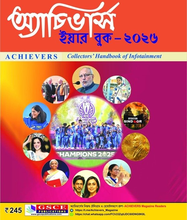 Achievers Year Book 2026. 1st January 2025 থেকে 31st December 2025সারা বছরের কারেন্ট অ্যাফেয়ার্স একসঙ্গে পেতে অবশ্যই সংগ্রহে রাখুন।