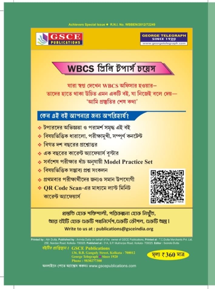 The best book WBCS (Executive) Preliminary Examination “Achievers Topper Choice” designed by GSCE Publications for sure success in WBCS examination.
